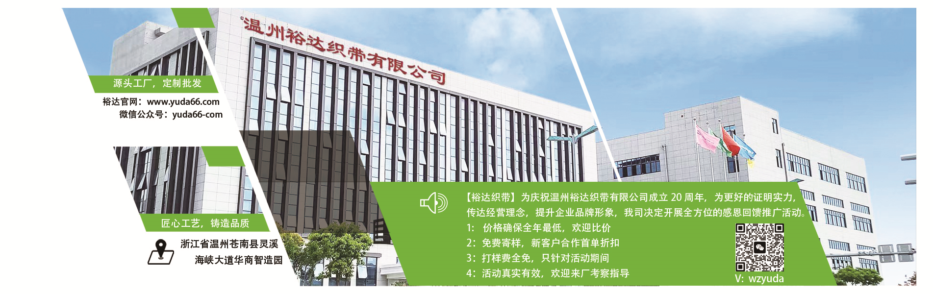 • 經驗優(yōu)勢 裕達從事織帶產品已有20多年的歷史。從一個小型的家庭作坊開始,發(fā)展成為一家擁有200多名員工的大型企業(yè)。